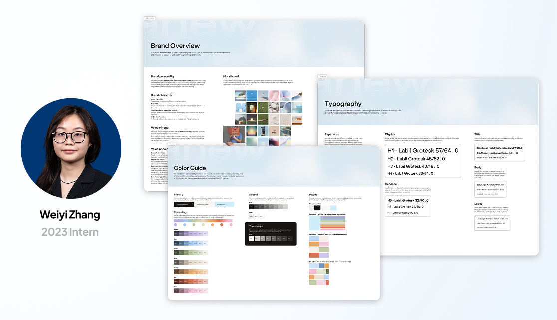 The first intern to join the team, Weiyi had never done any work creating a style guide, brand, or color palette. When I asked her where she would like to grow, she indicated she'd love to learn about brand.