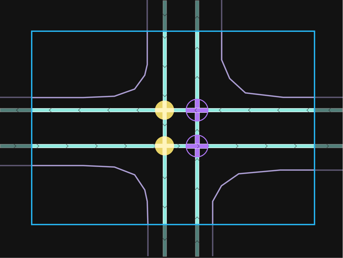 This annotation tells the autonomous car whether or not it has the right of way when another vehicle approaches its projected path. In even a simple intersection, there can be dozens of conflict annotations that need to be created and audited for accuracy.