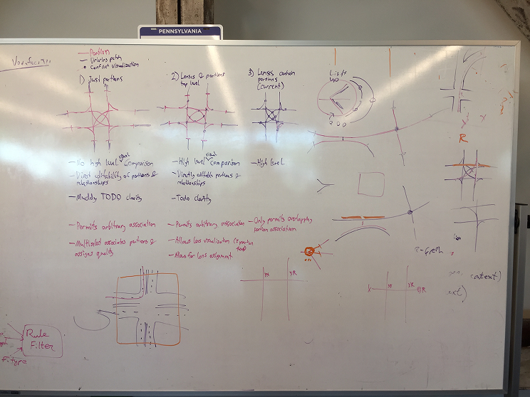 Working with users, I went through several iterations of design for visualization and input mechanics. We landed on an approach I called “lenses”.