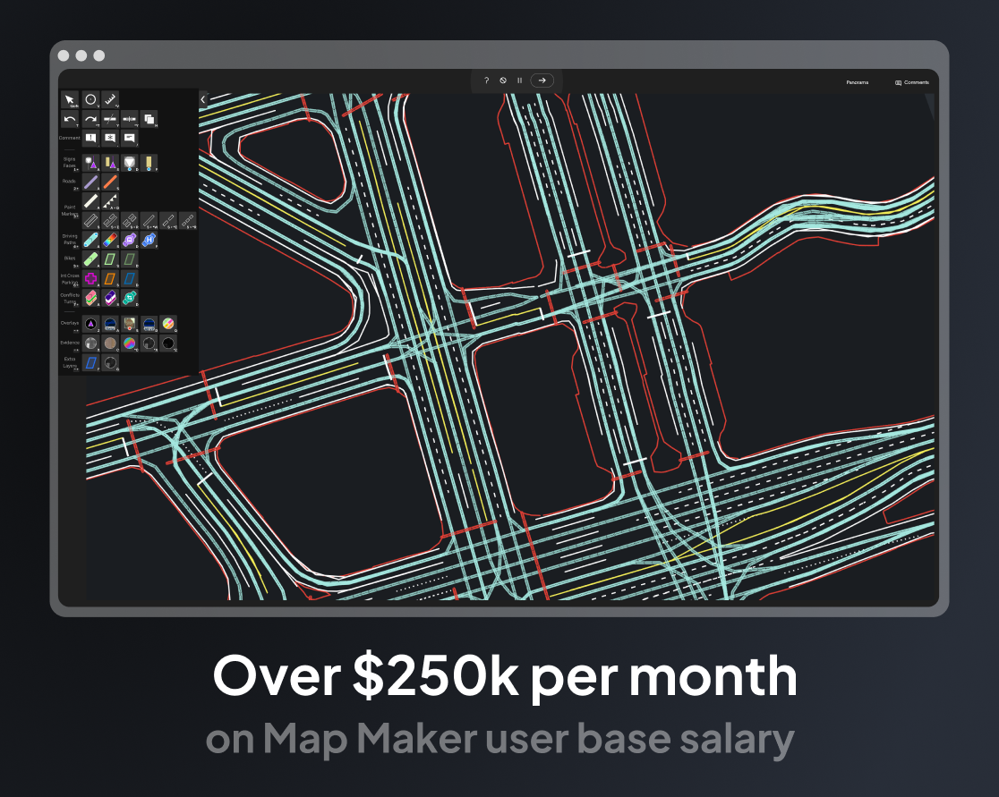 Our internal specialized mapping team costs over $250k/mo to run. They're using our product Map Maker 8 hours a day, 5 days a week.