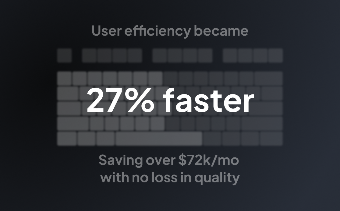 In the coming months after shipping this feature, we saw a 27% improvement in efficiency across all users, saving the business $72k/mo at our current scale.