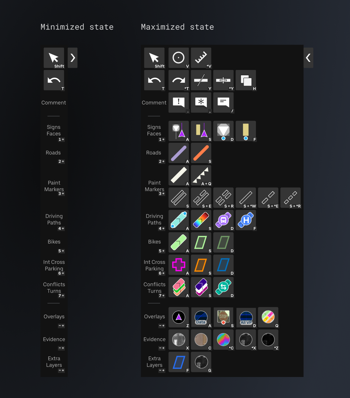MAP MAKER TOOL PANEL WITH SHORTCUT REFERENCES
